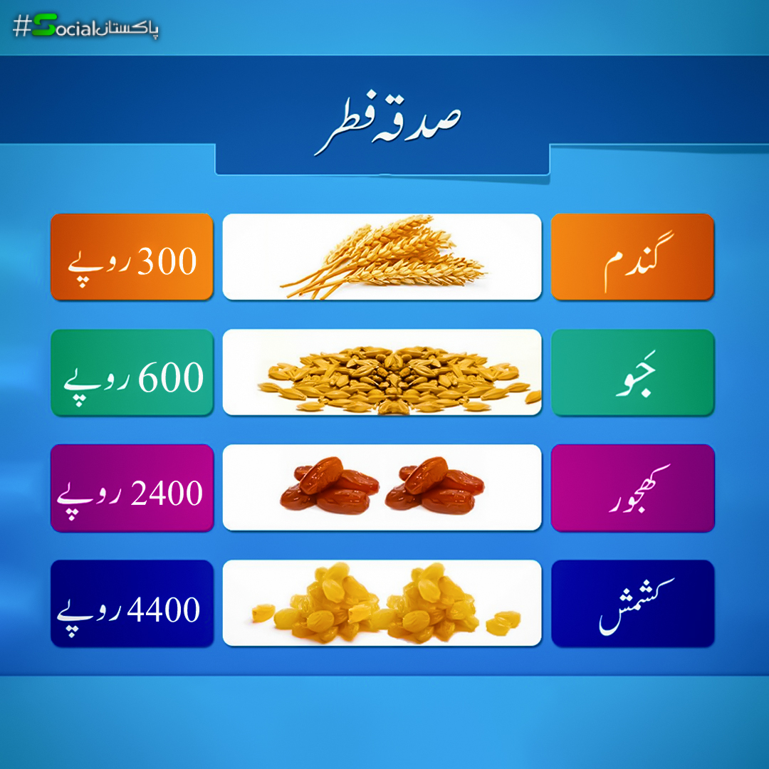 تفصیلات کے مطابق شریعہ بورڈ کے چیئرمین کے مطابق اس سال کم سے کم صدقہ فطر کی رقم 300 روپے فی کس ہو گی جو کہ دو کلو گندم کے آٹے کی قیمت کے برابر ہے جبکہ بیماری کے باعث روزہ چھوڑنے کا فدیہ بھی فی کس 300 روپے ہو گا۔مگر شریعت میں حکم ہے کہ اگر اپ بیماری کے باعث روزہ چھوڑتے ہیں تو صحت بحال ہونے پر روزہ رکھنا پڑے گا -صدقہ فطر کی رقم صاحب حیثیت لوگوں کے لیے جو کے حساب سے کم از کم 600 روپے ، کھجوروں کے حساب سے 2400 روپے جبکہ کشمش کے تناسب سے 4400 روپے ہو گی۔