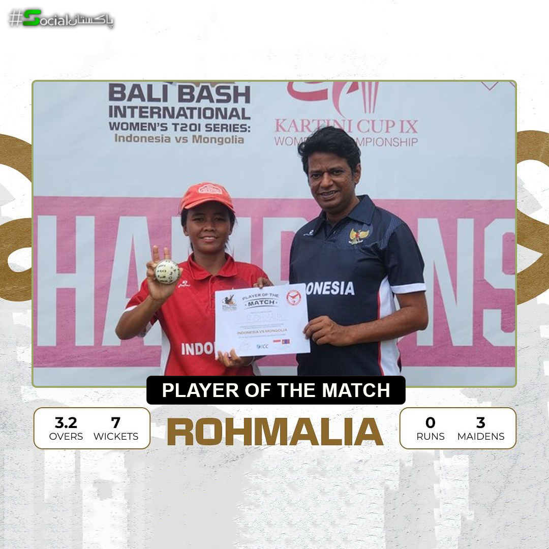 انڈونیشیا کی خاتون باولر روہمالیا نے ویمن ٹی 20 کرکٹ میں نئی تاریخ رقم کردی۔انھون نے ایسا ورلڈ ریکارڈ بنا دیا کہ مرلی دھرن اور شین وارن جیسے عظیم پلئیرز کو بھی پیچھے چھوڑ دیا -کرک انفو کی رپورٹ کے مطابق انڈونیشیا کی نوعمر آف سپنر روہمالیا نے خواتین کی ٹی 20 کرکٹ میں بہترین باﺅلنگ کے اعداد و شمار کا ایک نیا عالمی ریکارڈ بنایا۔روہمالیا نے منگولیا کے خلاف بغیر کوئی رنز دیئے 7 کھلاڑیوں کو پویلین کی راہ دکھائی۔