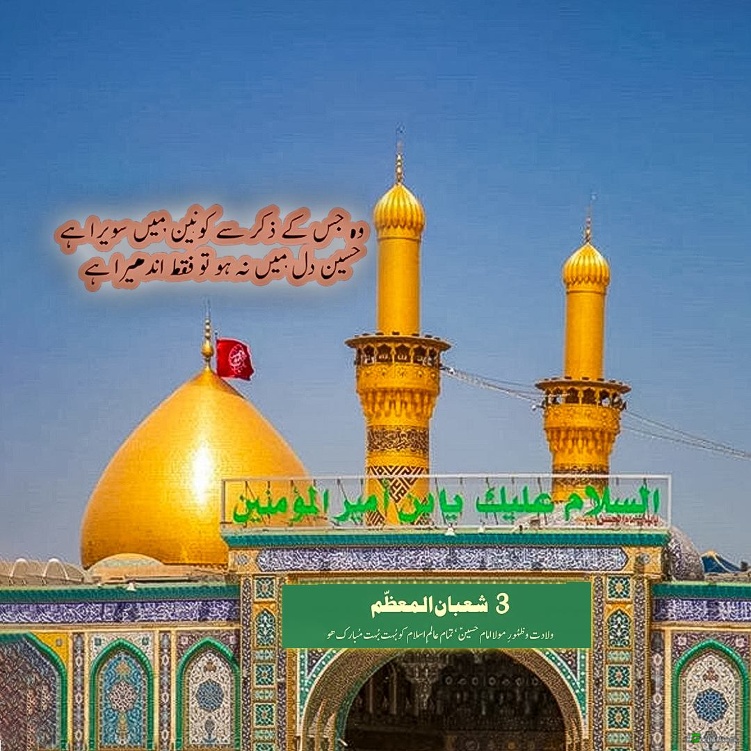 دنیا بھر میں آج رسول خدا ﷺکے نواسے ،علی المرتضیٰ علیہالسلام اور جناب فاطمہ زہرا سلام اللہ علیہا کے بیٹے کی آمد کا جشن بڑے روائتی جوش اور جزبے کے ساتھ منایا جارہا ہے -آپ 3 شعبان المعظم کو اس دنیا میں تشریف لائے – چار ہجری چھ سو پینتیس عیسوی کو رسول اکرم ﷺ کے پیارے نواسے امام حسین علیہ السلام کے نور وجود سے مدینۃ النبی کے بام و در روشن و منور ہوئے، مرسل اعظم ﷺ کی عظیم بیٹی حضرت فاطمہ زہرا سلام اللہ علیہا اور جانشین علی ابن ابی طالب کے پاکیزہ گھر میں نسل نبوت و امامت کے ذمہ دار امام حسین علیہ السلام کی آمد کی خبر سن کر پیغمبر اسلام ﷺ کا دل شاد ہوا اور مولود زہرا سلام اللہ علیہا کو دیکھ کر لبوں پر مسرت کی لکیریں پھیل گئیں۔