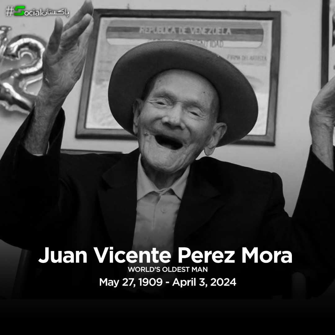 جنوبی امریکا کے ملک وینزویلا سے تعلق رکھنے والے جوآن ویسنٹ پیریز مورا نامی جن کو 2 سال قبل دنیا کا سب سے عمر رسیدہ شخص قرار دیا گیا تھا۔ 114 برس کی عمر میں دنیا سے رخصت ہوگئے -نجی ٹی وی جیو نیوز نے میڈیا رپورٹس کے حوالے سے بتایاہے کہ 2022 میں گنیز ورلڈ ریکارڈز کی جانب سے جوآن کو باقاعدہ سرٹیفیکٹ بھی دیا گیا تھا اور اس وقت ان کی عمر 112 سال اور 253 دن تھی۔پیریز مورا کی موت پر وینزویلا کے صدر نکولس مادورو نے بھی ان کی موت پر اپنا تعزیتی پیغام ان کے گھر والوں تک پہنچایا -سوشل میڈیا پلیٹ فارم ایکس پر غم کا اظہار کرتے ہوئے انھوں نے لکھا کہ ’جوآن ویسینٹ پیریز مورا 114 سال کی عمر میں ہمیشہ کے لیے ہم سے دور ہو گئے ہیں۔‘