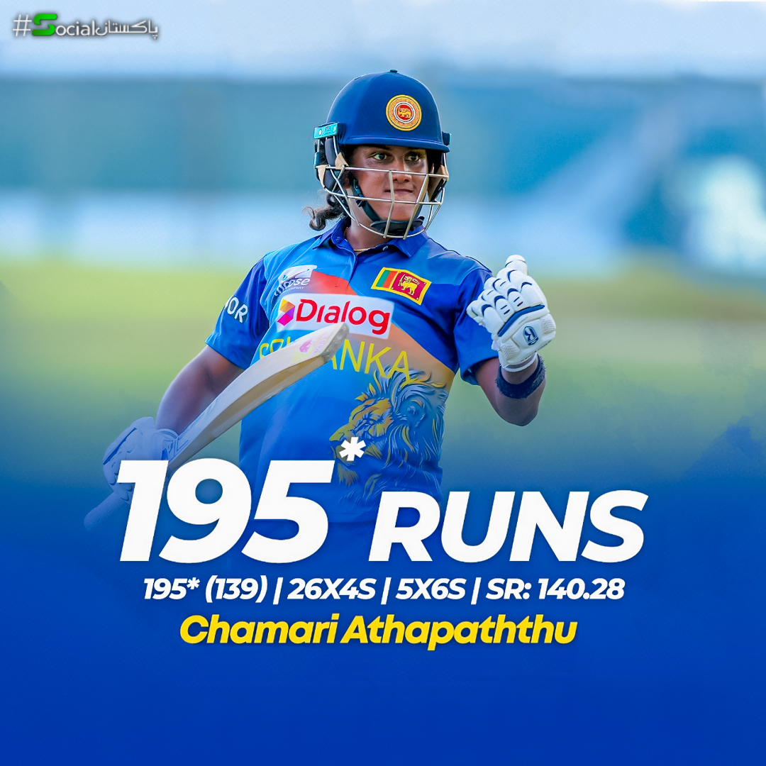 سری لنکن کپتان چمری اتاپتو 195 رنز بناکر ناقابل شکست رہیں، چمری اتاپتو کا سکور ویمن ون ڈے میں دوسری اننگز کا سب سے بڑا سکور ہے۔جنوبی افریقہ کی توقعات کے بالکل برخلاف سری لنکا نے با آسانی یہ میچ جیت لیا اور نیا ورلڈ ریکارڈ بھی اپنے نام کیا –