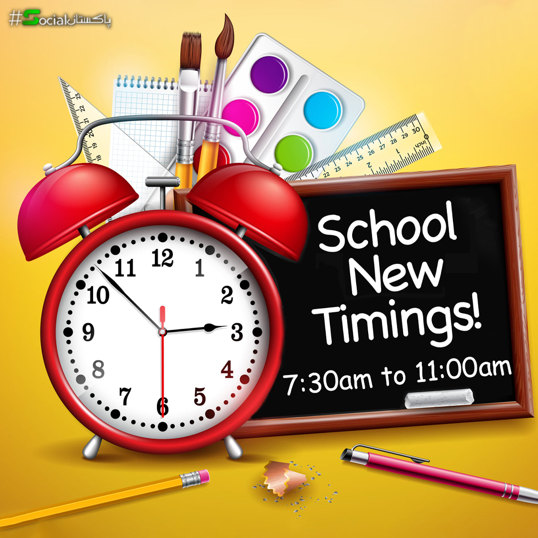 پنجاب میں سکولوں کے اوقات بھی تبدیل کر دیئے گئے،نوٹیفکیشن کے مطابق سکول پیر سے جمعرات تک صبح 7سے ساڑھے 11بجے ہوں گے،جمعے کو سکول صبح 7سے ساڑھے 10بجے تک ہوں گے۔ اگر گرمی کا یہ رنگ ایسے ہی جاری رہا تو تعطیلات وقت سے پہلے بھی ہوسکتی ہیں کیونکہ گرمی میں بچے بے ہوش ہونا شروع ہوجاتے ہیں جس کا رسک نہ ادارہ لے سکتا ہے اور نہ ہی حکومت ۔سیکریٹری ایجوکیشن کا اس سلسلے میں مزید کہنا ہے کہ اسکولوں کے اوقات میں تبدیلی کا مقصد طلبہ اور اساتذہ کا تحفظ ہے۔ گرمی کی شدت میں اضافہ ہوگیا ہے اور اس کے ساتھ ہی ہیٹ ویو کا خدشہ بھی ظاہر کیا گیا ہے۔